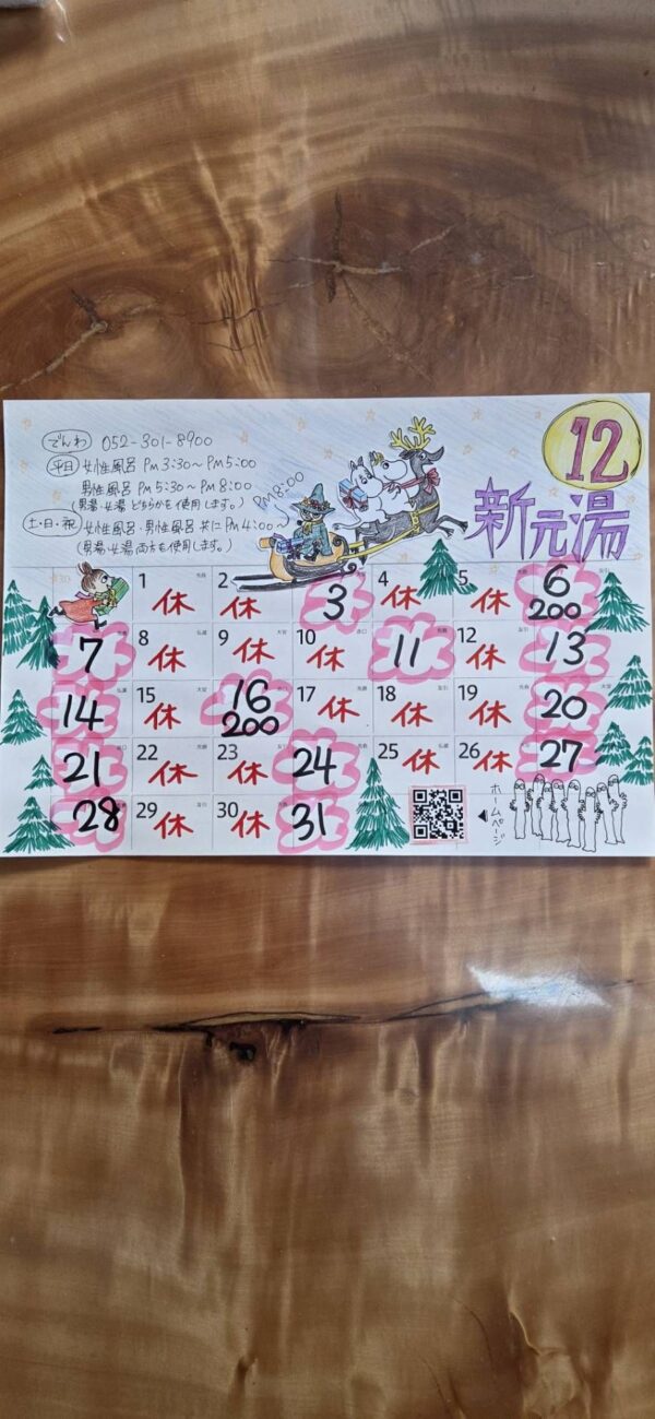 12月の営業カレンダー