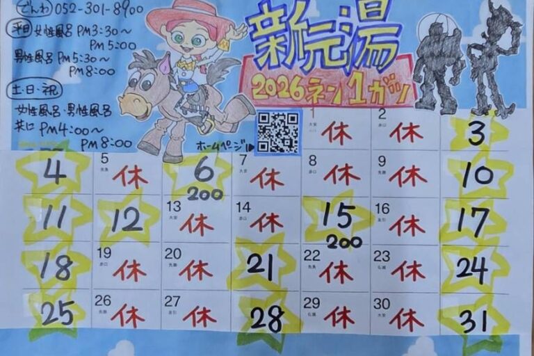 2026年1月の営業カレンダー
