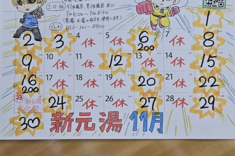 令和7年11月1日(土)より、入浴された方限定で1枚日付入りポストカードをプレゼ...
